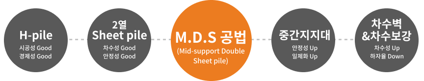 Sheet pile에 선부착된 거치용 앵글로 제작된 중간지지대를 끼워 설치한다.