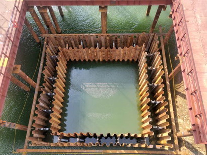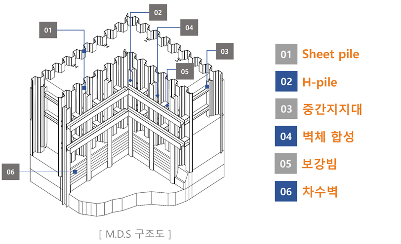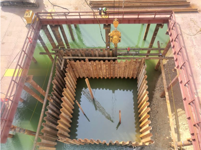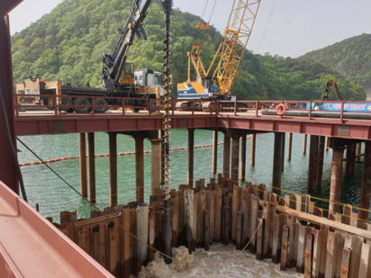 Sheet pile은 Vibro Hammer로 암반층 상단까지 직항타하여 근입한다.