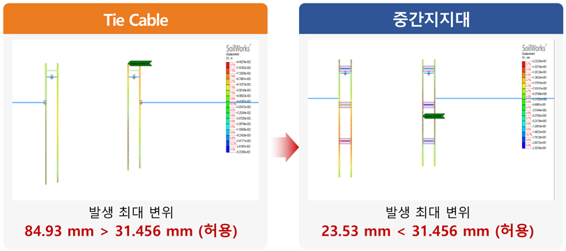 (* NOTE : 임의의 동일한 조건(벽체는 복합벽체)에서 Tie Cable과 중간지지대를 비교함.)